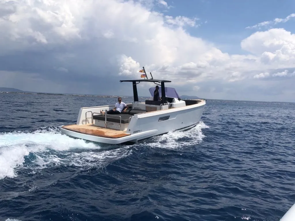 With its 11.4 meters of length and 3.65 meters of manga, the FJord 36 Open stands out for its modern design, its amplitude and its comfort on board, making it the perfect option to discover the Mallorca coast exclusively.