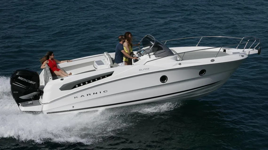 This 7.8 meter long boat can carry up to 8 passengers and its modern and very elegant design, as well as its solid construction and neat finish, guarantee great performance on the water and will turn your trip into an unforgettable experience.