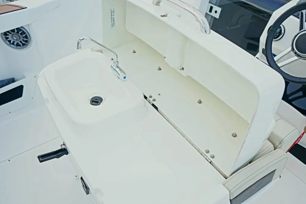 The spacious interior of the Karnic L602 has been carefully designed to provide maximum comfort to the occupants. With padded seats, a lounging area and a wind-protected cockpit, you can relax and enjoy every moment on the water.