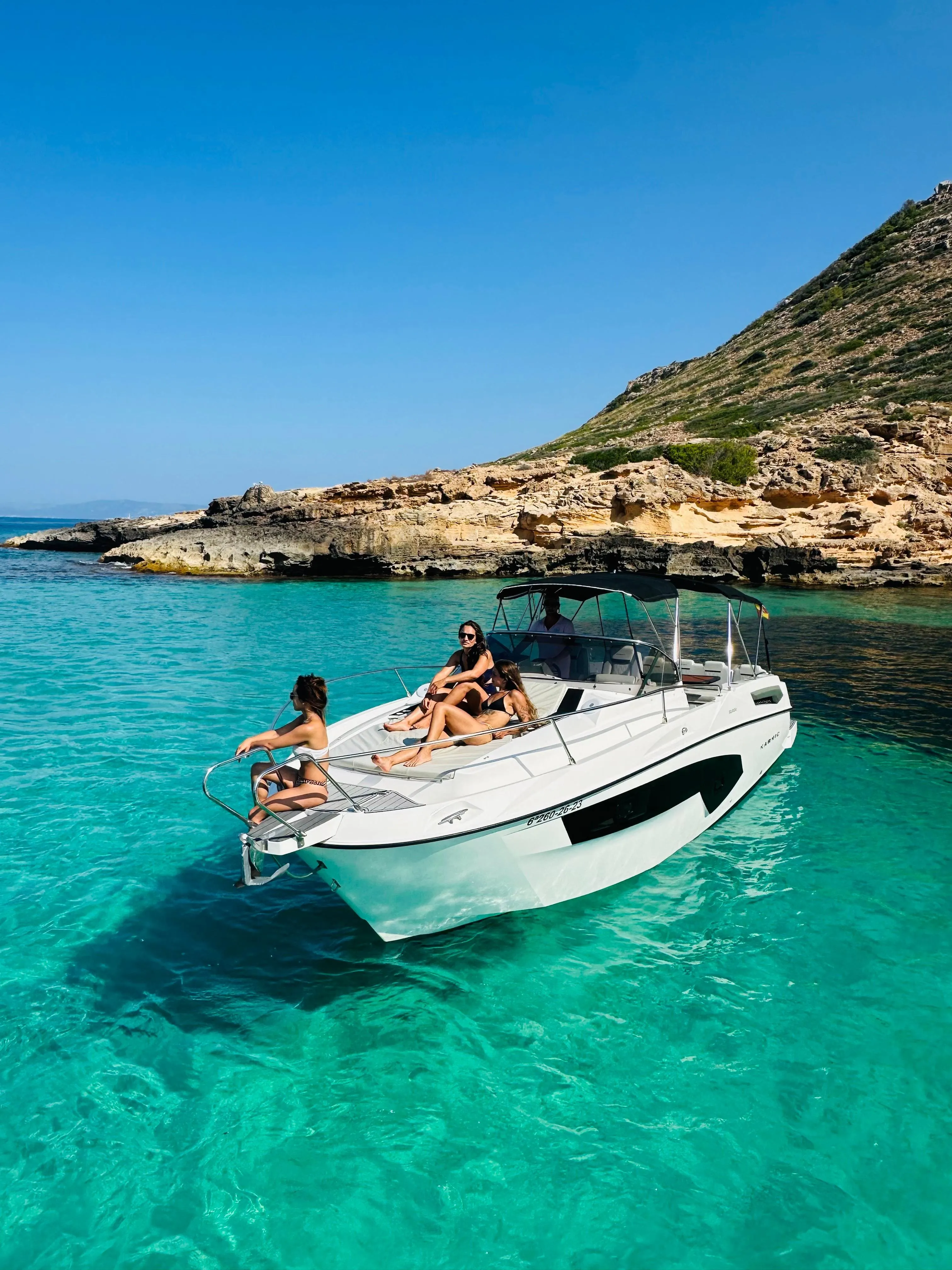 Welcome aboard the Karnic SL800, anchored in El Arenal! This elegant boat invites you to explore the stunning beaches and picturesque coastline from Cala Blava to Es Trenc or Cala Pi. Enjoy a unique experience at sea while discovering the beauty of these paradisiacal locations aboard the Karnic SL800. An unforgettable journey awaits you!