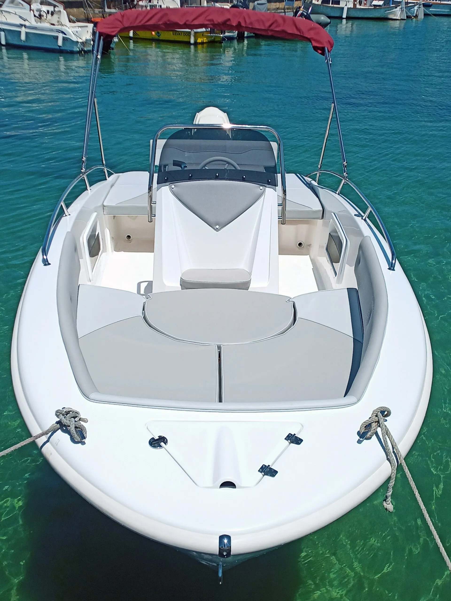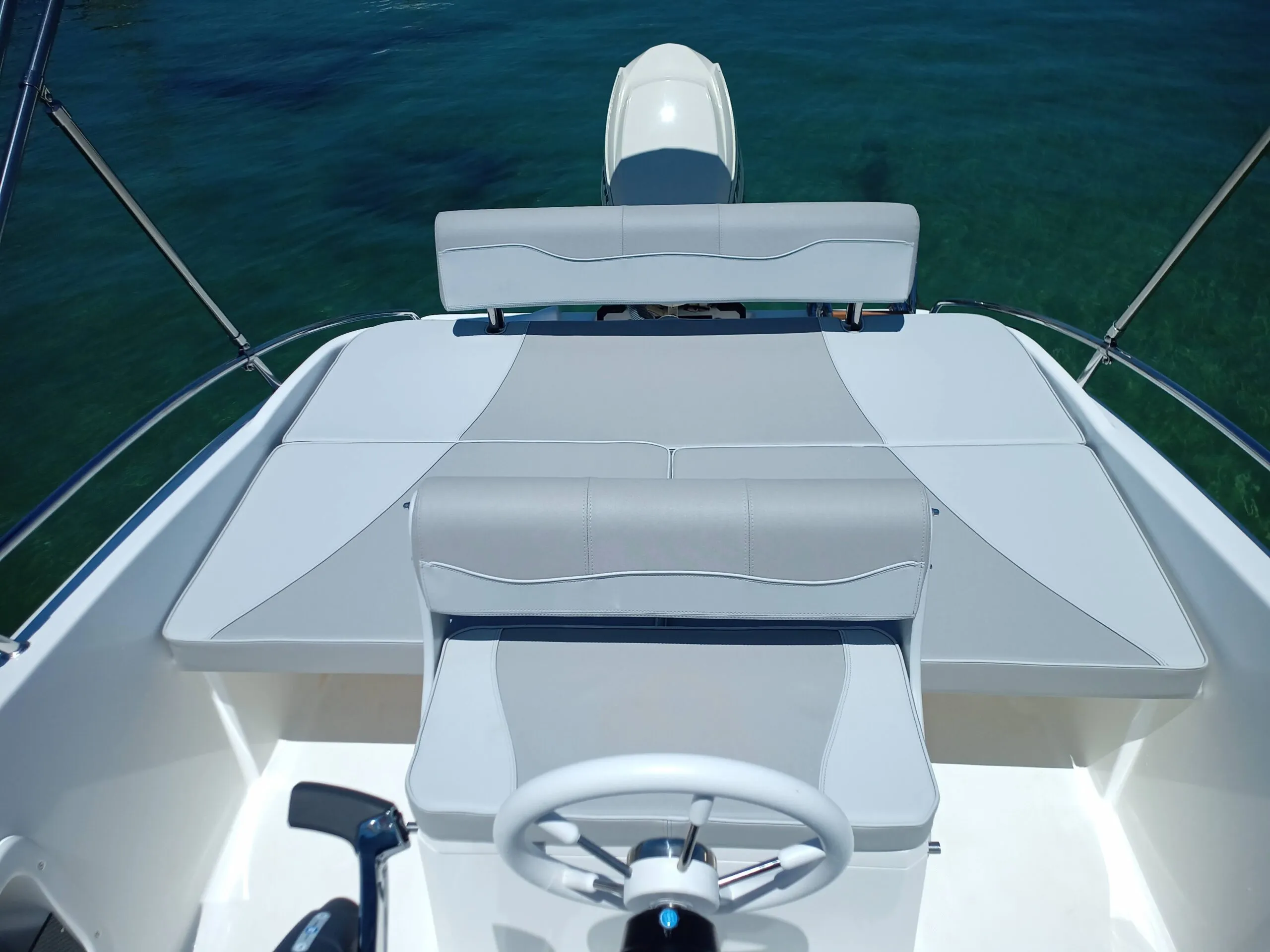 Its dimensions, 6 meters long and 2.18 meters wide, make it perfect for 8 people to enjoy its comforts. The large solariums available, located both in the bow and stern, are a very particular feature in this type of boat that makes it the ideal boat to enjoy a day of sun and sea.