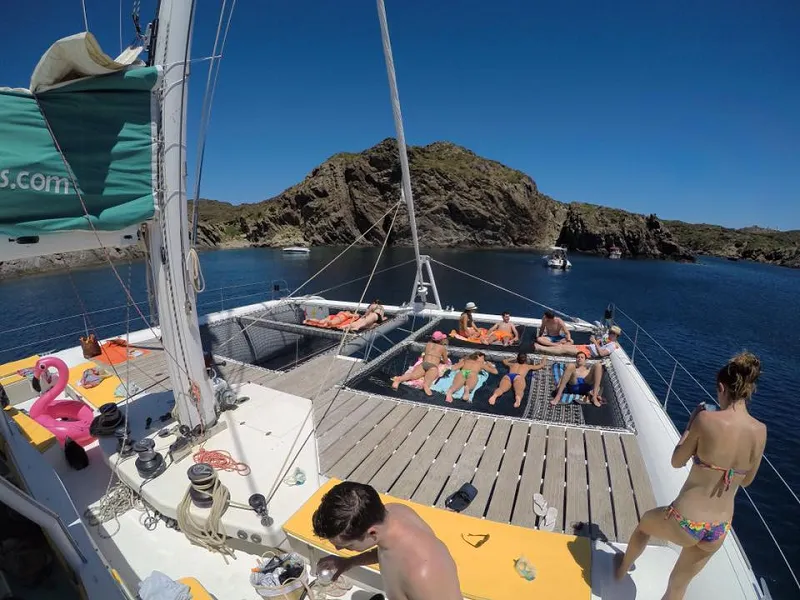 Embark on an exclusive adventure from the port of Palma de Mallorca aboard the catamaran. Sail silently and comfortably by sail or motor towards the paradisiacal Cala Vella.