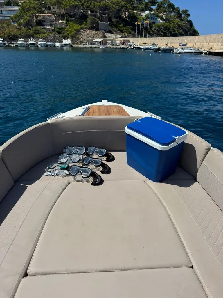 Aqua 515 is a perfect boat for those who seek to enjoy the sea without having a nautical degree. With a current, spacious and safe design, it is one of the most popular options between ships without a license in Mallorca and other tourist areas of the Mediterranean.