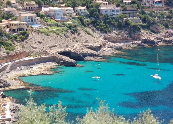 Santa Ponsa, located in southwest Mallorca, is an ideal starting point for boat trips thanks to its easy access, wide, sheltered bay, and proximity to numerous coves with turquoise waters. It's a lively area, perfect for families, groups of friends, or couples looking to combine relaxation and nature without straying too far.