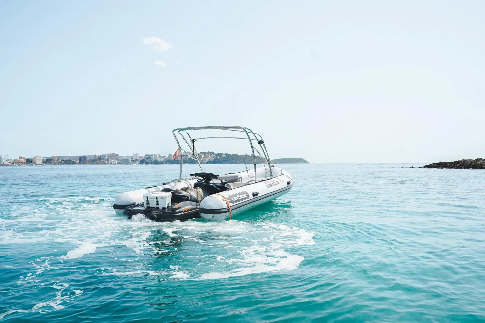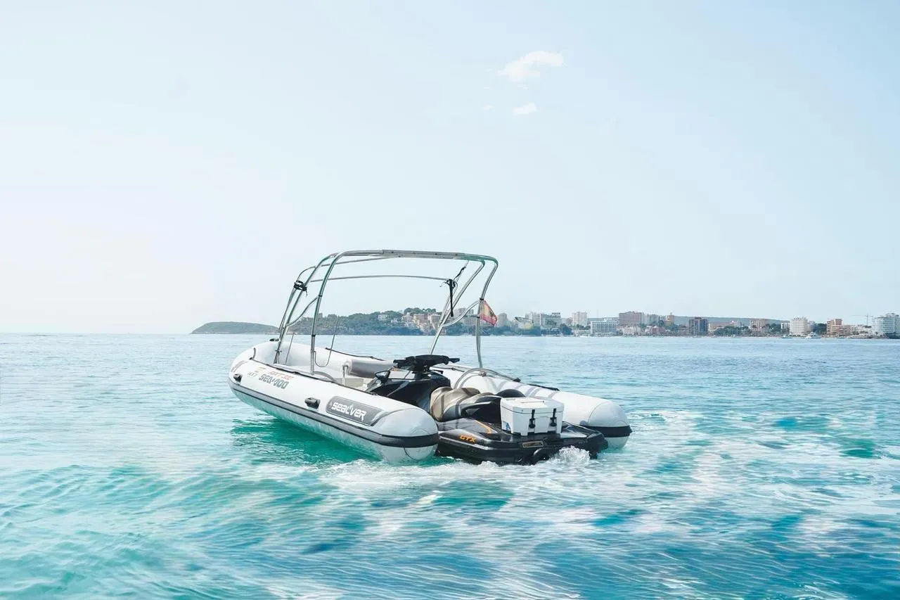 It is not any vessel. It is the perfect fusion between water motorcycle and pneumatic boat :